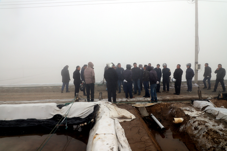 會前,與會人員一起現(xiàn)場參觀了埒南制鹽分公司9班的池道堰格,對硫酸鈣清理和土塘清淤工作作現(xiàn)場指導說明,隨后在生產(chǎn)服務公司會議室召開冬準動員大會,會議對冬準工作進行了全面部署,副總經(jīng)理古浩光對冬準工作提出要求,副總經(jīng)理張學峰宣讀了表彰“秋扒”工作先進機組先進個人和安全質量標兵的決定,紀委書記、工會主席王宏宣讀了關于開展“大干冬準勞動競賽”活動方案,新河、埒南制鹽分公司四名班組長就如何干好冬準工作分別作表態(tài)發(fā)言。