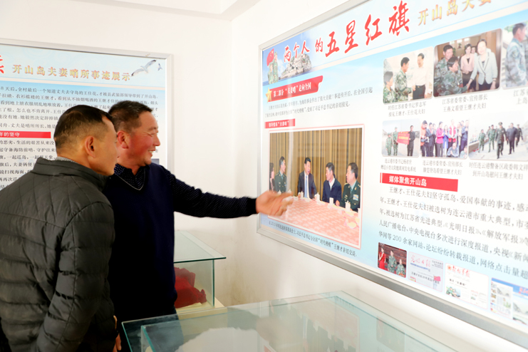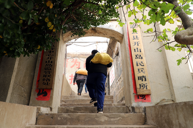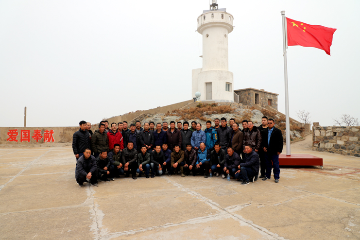 上午8點(diǎn),在發(fā)動(dòng)機(jī)巨大的轟鳴聲中,漁船緩緩駛離港口。近一個(gè)小時(shí)的顛簸,開山島出現(xiàn)在了視野里,由小到大,逐漸清晰。簡(jiǎn)易碼頭上,守島民兵遠(yuǎn)遠(yuǎn)地沖著大家揮手,船上的人顧不上漁船的劇烈晃動(dòng),一個(gè)個(gè)扒著船沿?zé)崆榛貞?yīng)著,所有人的臉上都寫滿敬意和期待。漁船隨著海浪的節(jié)拍上下晃動(dòng)著,班組長(zhǎng)們登上碼頭,就緊緊握住守島民兵的手,對(duì)他們守島衛(wèi)國(guó),無(wú)怨無(wú)悔堅(jiān)守和付出的愛(ài)國(guó)奉獻(xiàn)精神表示欽佩。班組長(zhǎng)們跟隨著守島民兵沿著王繼才夫婦他們當(dāng)年的巡邏路線,拾級(jí)而上,大家一邊感受巡島爬山的辛苦,一邊聆聽著守島民兵講解王繼才夫婦32年守島的艱難困苦和生離死別。