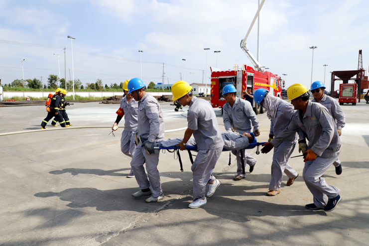 此次演練模擬電器短路和起火事故開展應(yīng)急救援。碼頭現(xiàn)場吊機(jī)在操作中發(fā)生主電機(jī)電流過載,配電箱出現(xiàn)異常,吊機(jī)作業(yè)操作無法正常工作,主機(jī)發(fā)出報(bào)警,吊機(jī)剎車系統(tǒng)出現(xiàn)失靈,電器設(shè)備出現(xiàn)故障,繼而發(fā)生初期電火,報(bào)警信號發(fā)出后30秒內(nèi)該區(qū)域內(nèi)所有人員疏散完畢,并撥打119火災(zāi)救援電話,并迅速遏制火情,撲滅火災(zāi),有效保護(hù)在場人員人身安全及公司財(cái)產(chǎn)安全。整個演練過程,參演員工嚴(yán)格按照應(yīng)急預(yù)案要求,積極配合,有序、迅速地完成疏散及滅火等演練任務(wù),人員及財(cái)產(chǎn)得到了有效保護(hù),演練達(dá)到了預(yù)期效果。