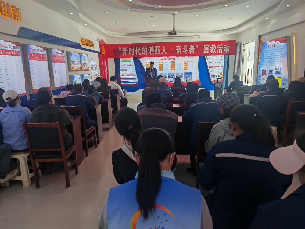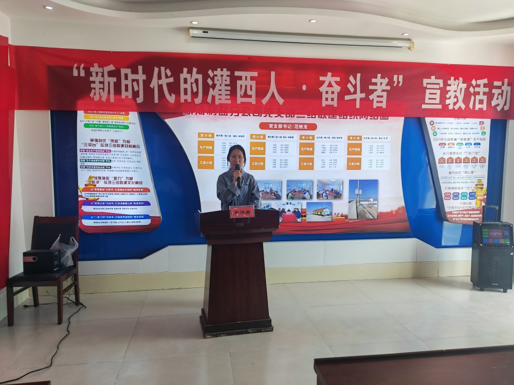 “‘鹽場精神’是苦咸熬出來的擔(dān)當(dāng),是鹵水泡出來的意志,是‘忠誠如鹽、純粹若晶、奉獻(xiàn)似海’的堅(jiān)守,是‘腳踏實(shí)地、精益求精、求真務(wù)實(shí)’的沉淀。”“當(dāng)破曉的晨光剛剛?cè)玖聋}田的阡陌,鹽田深處已躍動(dòng)著一個(gè)被工友們親切喚作“星星”的身影,那枚別在他胸前的軍徽如同不滅的星芒,在鹵水浸潤的土地上扎下深根?!薄笆曦?cái)務(wù)生涯,別部長以女性特有的堅(jiān)韌與細(xì)膩,演繹著新時(shí)代財(cái)務(wù)人的擔(dān)當(dāng)故事?!薄?/span>二十年如一日,尹加根用鐵鍬和汗水在48間旱廁間刻下自己的名字?!薄爸汽}一線向來被視為‘男人的戰(zhàn)場’,但楊中華偏要在這里闖出一片天地。銀灘無聲,見證著一朵玫瑰在鹽堿地上頑強(qiáng)綻放。”在“新時(shí)代的灌西人·奮斗者”的宣教活動(dòng)現(xiàn)場,宣講員以真摯的文字、動(dòng)人的語言,帶我們走進(jìn)了新時(shí)代灌西人的奮斗故事!