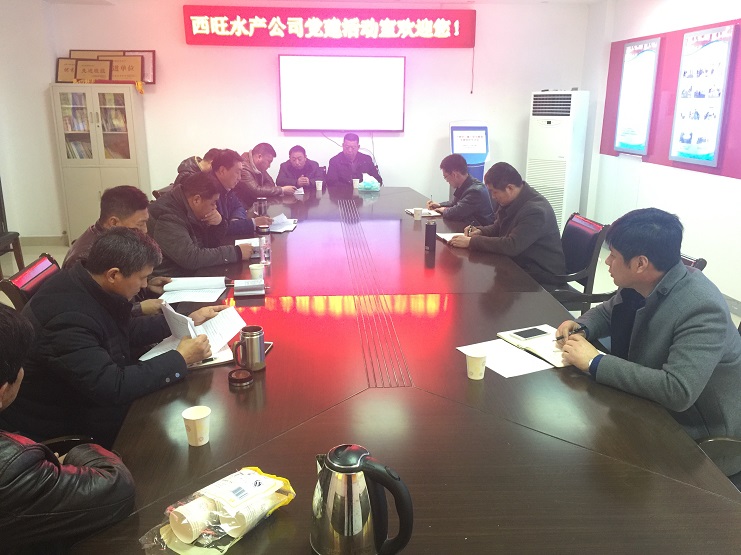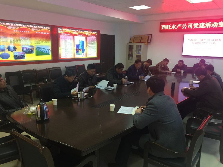 3月27日下午,根據(jù)公司黨委的總體安排,西旺水產(chǎn)公司黨支部在該公司黨建活動(dòng)室召開(kāi)了“兩學(xué)一做”學(xué)習(xí)教育專(zhuān)題組織生活會(huì)。投資公司黨委領(lǐng)導(dǎo)、徐進(jìn)軍副總經(jīng)理、督導(dǎo)組領(lǐng)導(dǎo)潘部長(zhǎng)、何部長(zhǎng)等到會(huì)進(jìn)行現(xiàn)場(chǎng)指導(dǎo)。會(huì)議由該黨支部書(shū)記孫武善同志主持,全體黨員參加了會(huì)議。