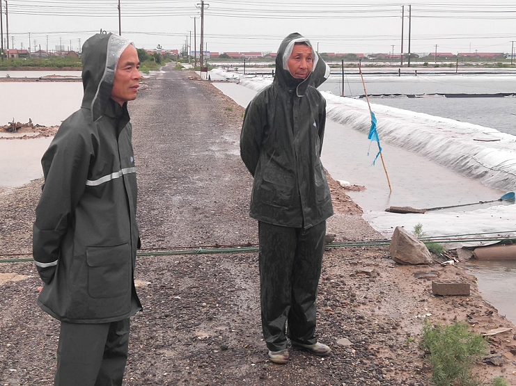 16日清晨,灌西投資公司常務副總經理吳衛(wèi)平冒著暴雨親臨海水鹽基地檢查指揮防汛工作,并作出詳細防汛指導工作意見。