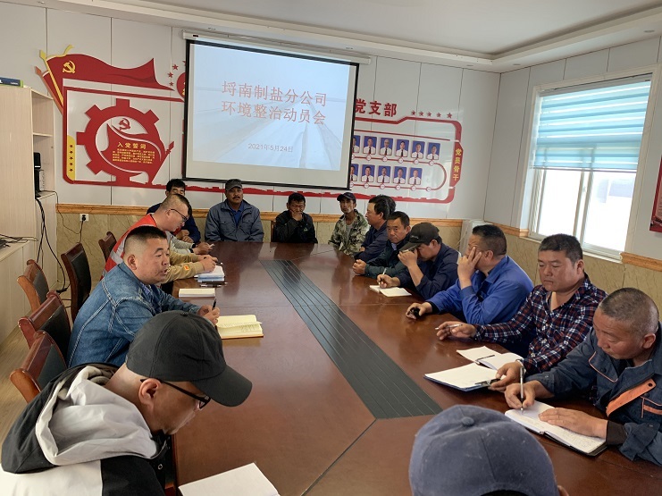 5月24日上午,在埒南制鹽分公司活動室內召開了壞境整治動員專項會議,全體班組長及黨員參加會議。