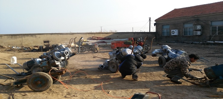 為確保一月底前完成扒鹽設(shè)備維護保養(yǎng)工作,日前,機械設(shè)備服務中心召開班組骨干會議,進一步明確維修任務,細化、量化到人頭,注重維修安全,向目標沖刺。該中心機修人員能不畏嚴寒,搶時間維修保養(yǎng)扒鹽設(shè)備,目前10臺帶鹵扒鹽唐30、6臺破碴唐30、10臺扒鹽大架已全部維護結(jié)束。20臺鹽泵已進入上漆保養(yǎng)階段。(下圖為設(shè)備上漆保養(yǎng))