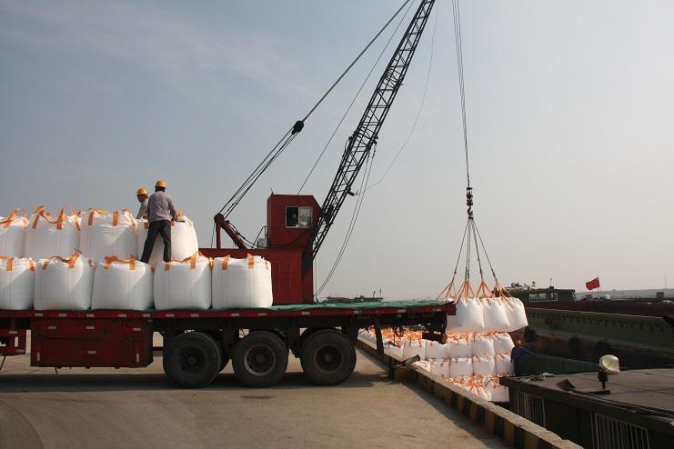 4月30日上午9時(shí)許,隨著一聲汽車長笛,一輛載有近40噸化工物資的卡車徐徐停靠在宵洋物流公司五灌河碼頭邊,緊接著碼頭鐵臂起舞,機(jī)械操作工嫻熟地操縱著塔吊機(jī)械,準(zhǔn)確地將一包包噸貸物資裝卸在碼頭邊的貨船中。。。。。。自此,一輛輛滿載40余噸貨物的卡車源源不斷向碼頭駛來。
