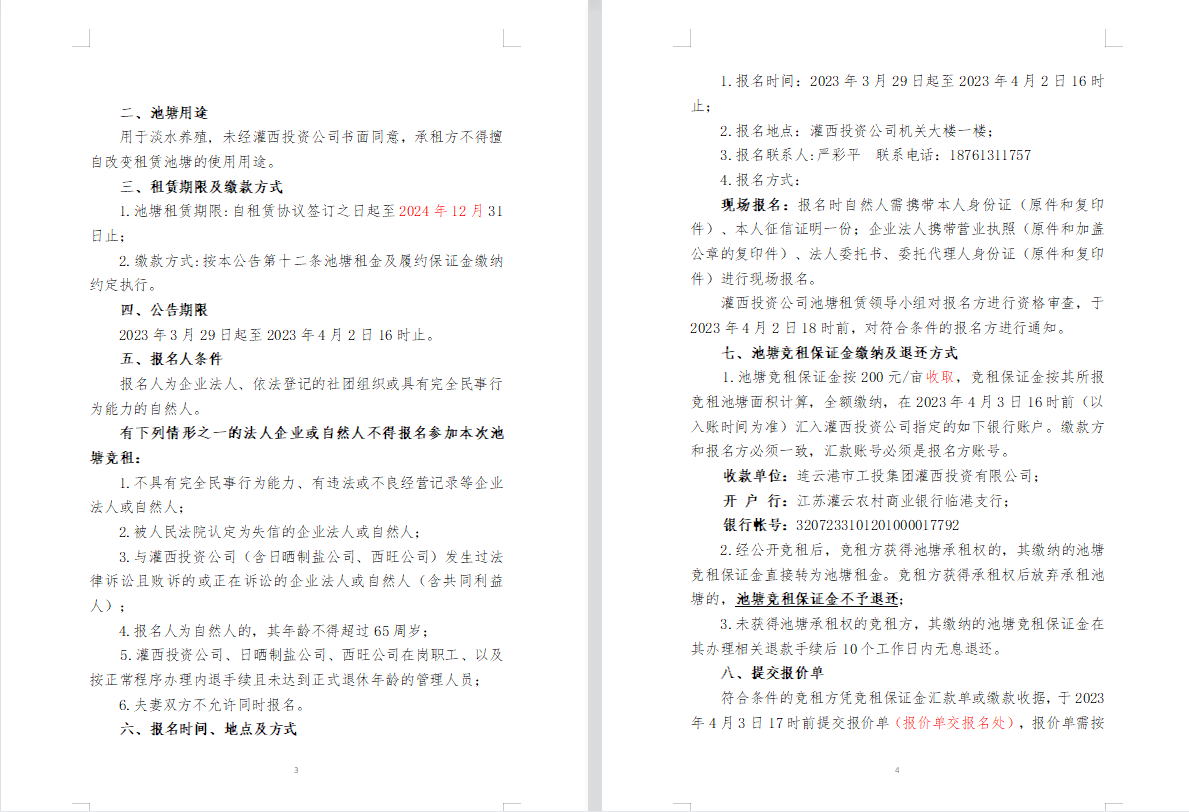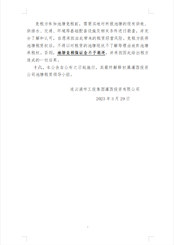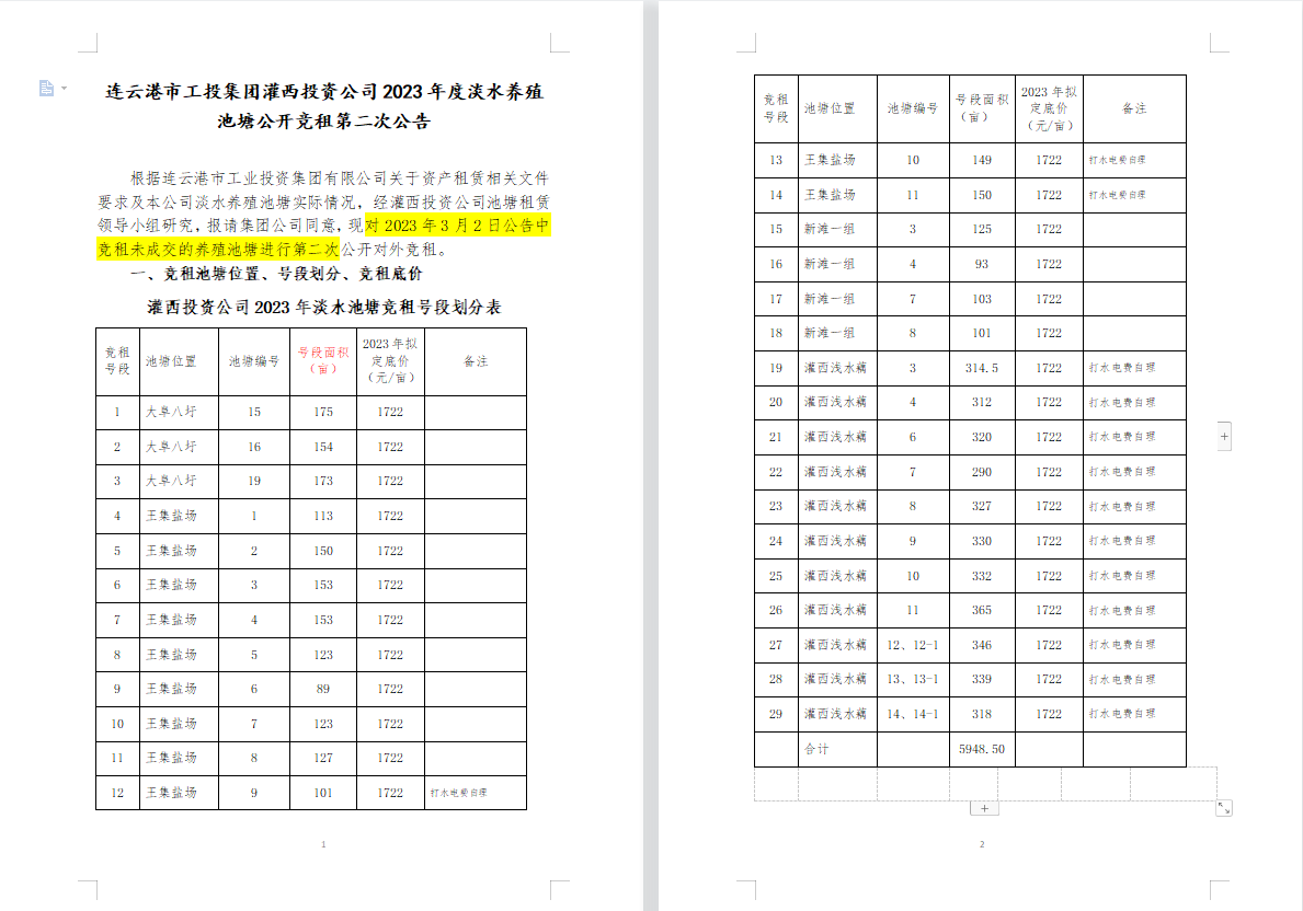 連云港市工投集團(tuán)灌西投資公司2023年度淡水養(yǎng)殖池塘公開競(jìng)租第二次公告