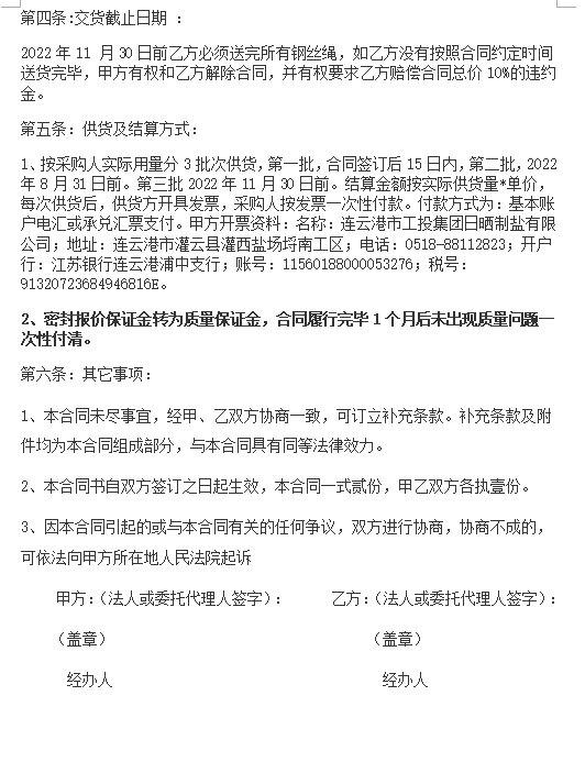 連云港市工投集團(tuán)日曬制鹽有限公司鋼絲繩采購項(xiàng)目