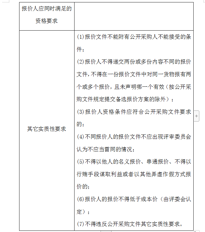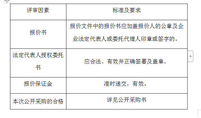 2、評審委員會將根據(jù)以下標(biāo)準(zhǔn)對各報價人進(jìn)行初步評審,有一項(xiàng)不符合要求的,作否決報價處理,不進(jìn)入詳細(xì)評審。