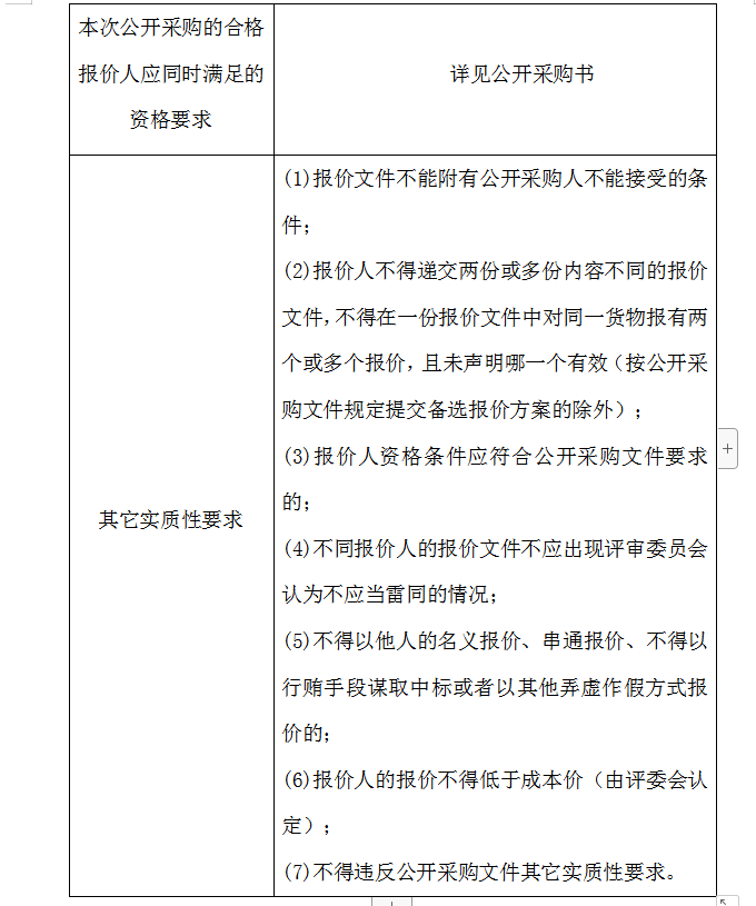 2、評(píng)審委員會(huì)將根據(jù)以下標(biāo)準(zhǔn)對(duì)各報(bào)價(jià)人進(jìn)行初步評(píng)審,有一項(xiàng)不符合要求的,作否決報(bào)價(jià)處理,不進(jìn)入詳細(xì)評(píng)審。