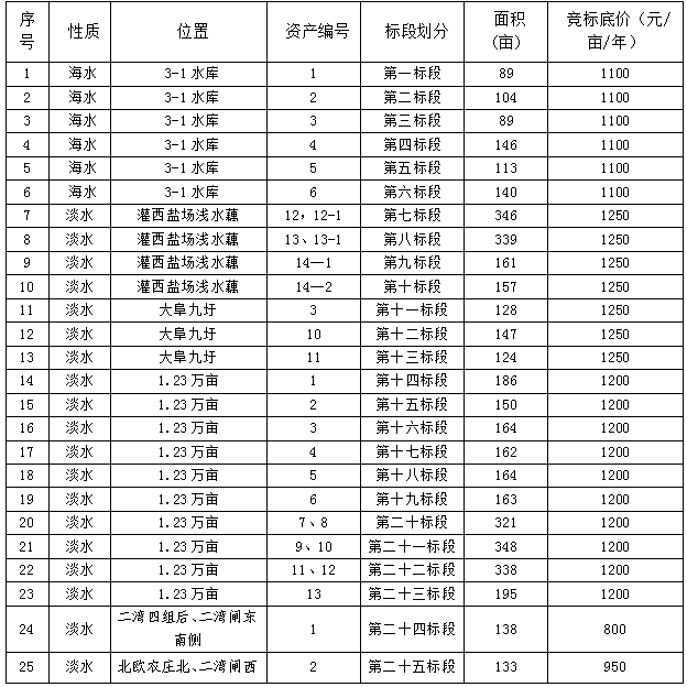 三、競租池塘各標(biāo)段競標(biāo)底價: