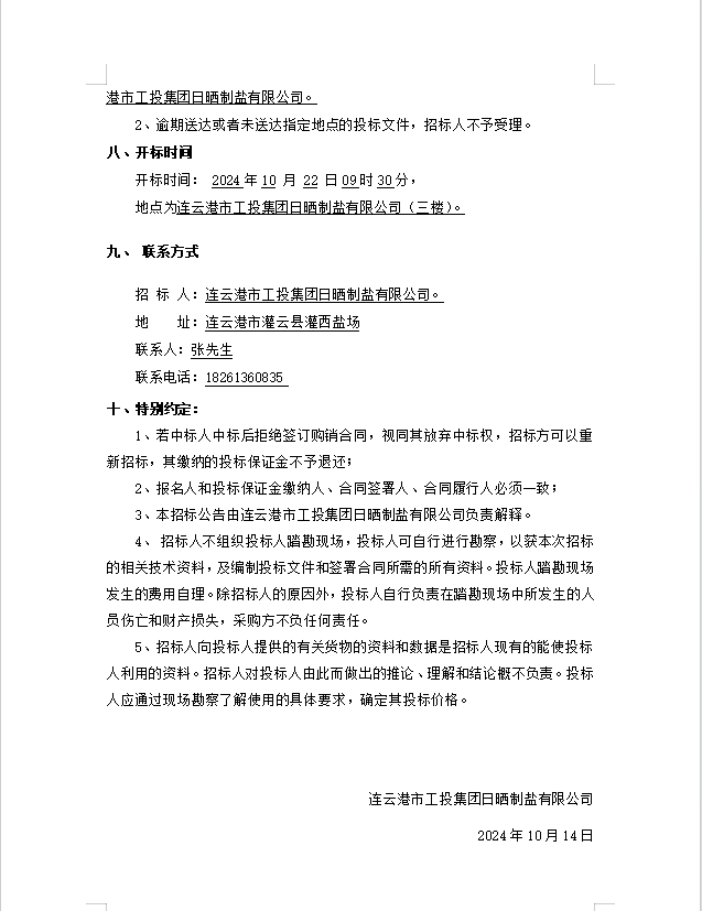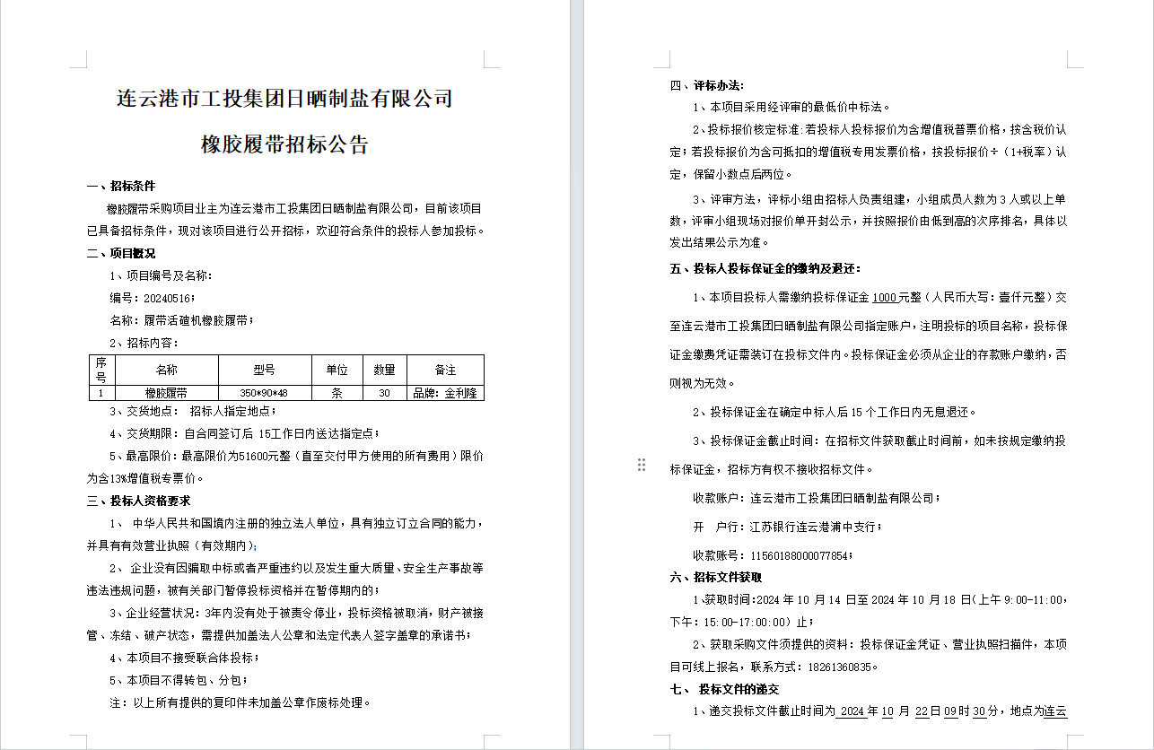 連云港市工投集團(tuán)日曬制鹽有限公司橡膠履帶招標(biāo)公告