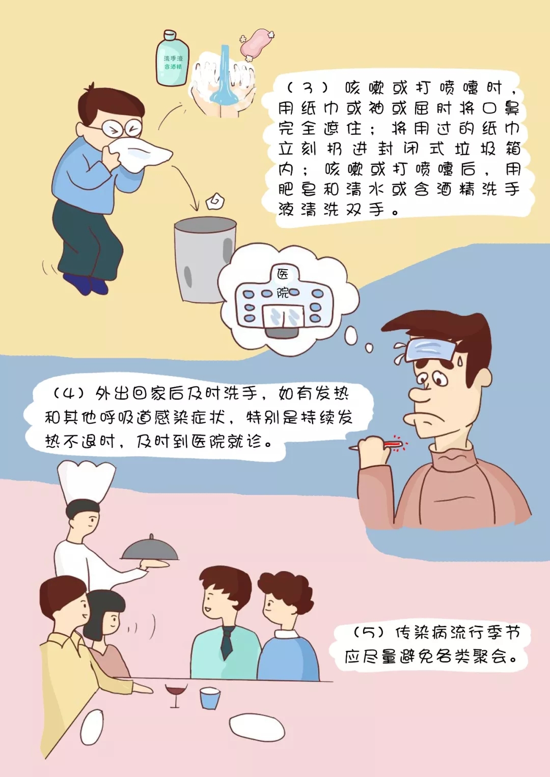 (4)外出回家后及時(shí)洗手,如有發(fā)熱和其他呼吸道感染癥狀,特別是持續(xù)發(fā)熱不退時(shí),及時(shí)到醫(yī)院就診。