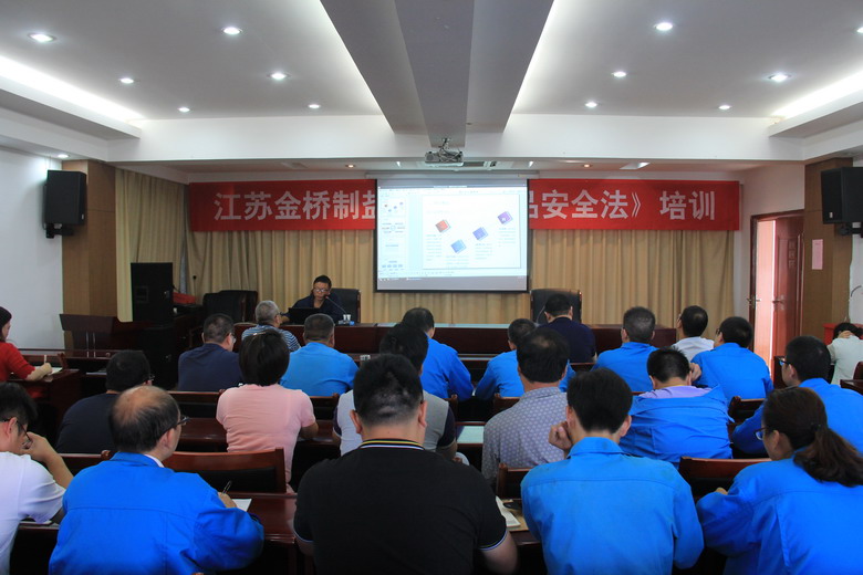 9月6日,我公司邀請北京世標認證中心審查員、揚州市產(chǎn)品質(zhì)量監(jiān)督檢驗所食化室主任陶俊,在三樓會議室開展《食品安全法》培訓,公司領導,各車間管理人員、班組長、生產(chǎn)骨干和機關(guān)全體管理人員參加了培訓。