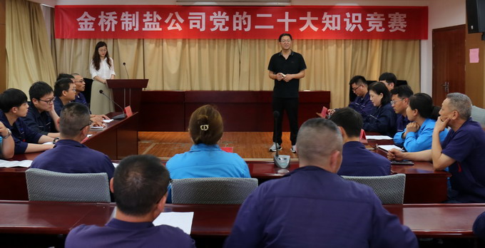 6月19日下午,我公司黨委在三樓會議室開展黨的二十大知識競賽活動。公司黨委副書記、紀委書記、工會主席曹開明擔任此次競賽裁判長,來自5個支部15名職工參賽,部分車間、單位職工代表觀賽。