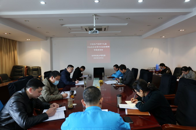 11月15日上午,我公司召開黨委理論中心組學(xué)習(xí)會(huì),專題學(xué)習(xí)中國共產(chǎn)黨第十九屆中央委員會(huì)第六次全會(huì)精神。會(huì)議由公司黨委書記、董事長(zhǎng)、總經(jīng)理朱桂玉主持,公司黨委班子及其他黨委理論中心組成員參加了學(xué)習(xí)會(huì)。