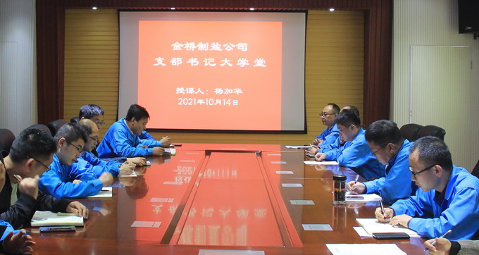 10月14日下午,我公司黨委在四樓黨建活動室組織開展“支部書記大學堂”活動。雪花鹽車間黨支部副書記楊加華以“學黨史守初心 充分發(fā)揮戰(zhàn)斗堡壘作用”為主題,結合車間工作實際,為各支部黨員干群上了一堂生動的黨課。通過此次活動的開展,引導廣大黨員干群學習百年黨史,牢記初心使命,進一步堅定信心,鼓足干勁,齊心協(xié)力推動全年目標順利實現(xiàn)。(金宣)
