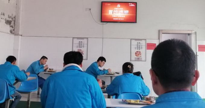 餐廳電視循環(huán)播放《百煉成鋼:中國(guó)共產(chǎn)黨的100年》《孤島32年》及紅色電影等學(xué)習(xí)教育視頻