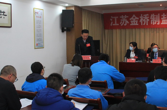 大會(huì)簽訂了《2021年度集體合同》、《2021年度經(jīng)營(yíng)認(rèn)標(biāo)責(zé)任書》,與會(huì)代表認(rèn)真審議通過了總經(jīng)理工作報(bào)告,通過了大會(huì)決議、有關(guān)方案和意見。加工鹽車間、包裝鹽車間、銷售部依次作了表態(tài)發(fā)言。大會(huì)表彰了第九屆“金橋杯”勞動(dòng)競(jìng)賽、2020年“大干四季度”勞動(dòng)競(jìng)賽的先進(jìn)集體和先進(jìn)個(gè)人以及2020年度“金橋工匠”。(金宣)