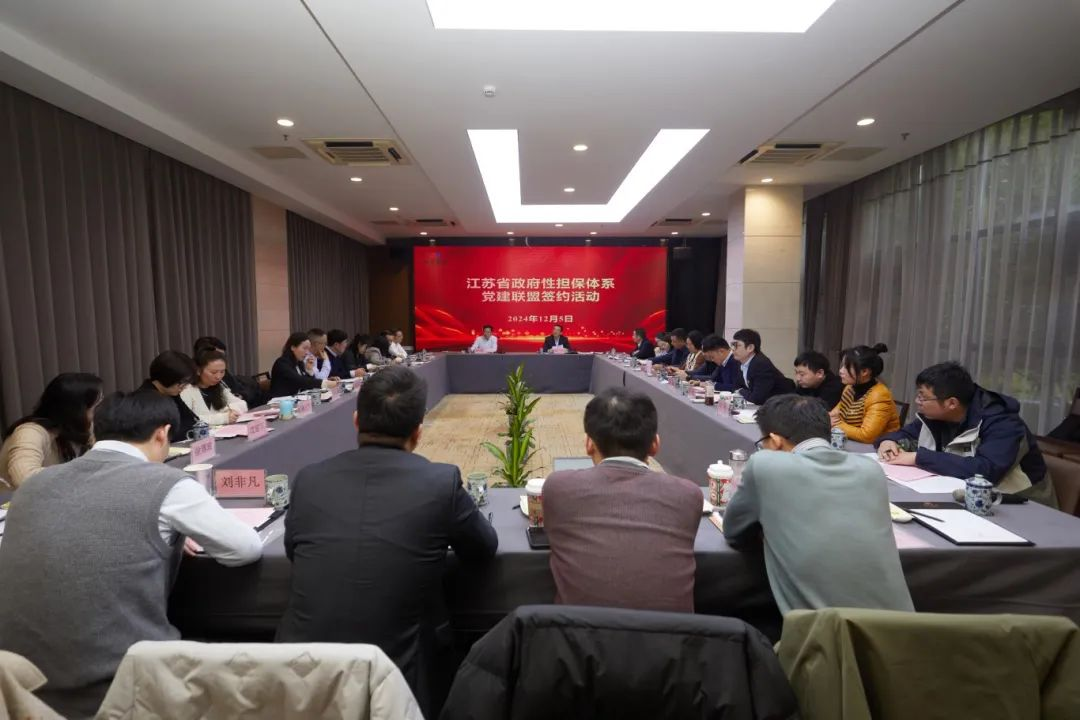 為深入貫徹落實黨的二十大和二十屆二中全會、三中全會精神,以高質量黨建引領我省政府性擔保體系高質量發(fā)展,推動黨建工作與業(yè)務工作互融互促,2024年12月5日,江蘇省融資再擔保有限責任公司在南通市發(fā)起成立我省政府性擔保體系黨建聯(lián)盟,首批邀請全省13個設區(qū)市的14家重點政府性擔保機構集中簽約。
