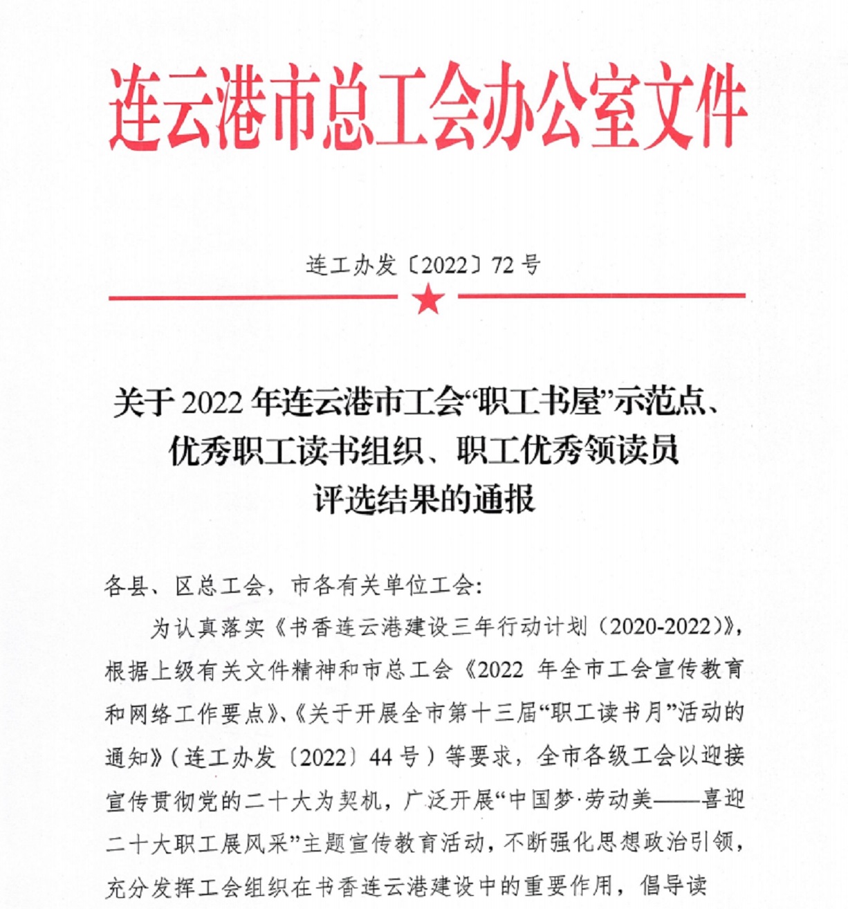 近日,工投金融板塊打造的“職工書屋”喜獲連云港市總工會授予“2022年連云港市工會職工書屋示范點(diǎn)”稱號。這是本年度全市45個示范點(diǎn)之一,也是金融板塊開展文化建設(shè)以來首次獲此殊榮。