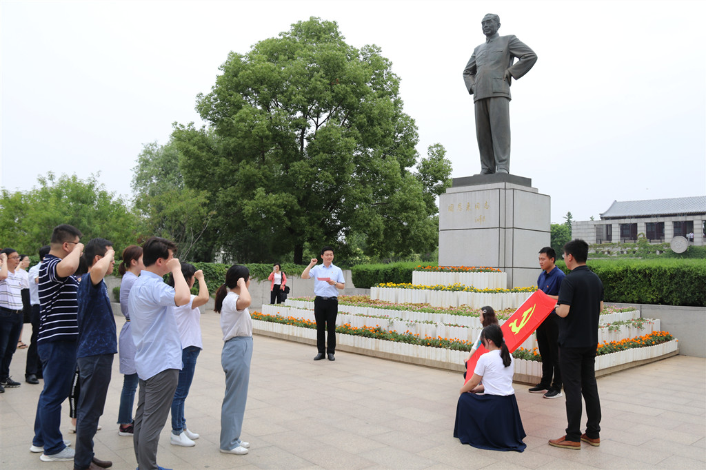 為慶祝建黨98周年,6月16日資產(chǎn)管理公司黨支部組織全體黨員赴淮安周恩來紀(jì)念館、故居及新四軍劉老莊連紀(jì)念園開展“不忘初心,牢記使命”主題紅色教育活動,深切緬懷一代偉人的豐功偉績,學(xué)習(xí)和弘揚(yáng)老一輩無產(chǎn)階級革命家的革命情懷和崇高精神。引導(dǎo)公司黨員干部“悟初心、守初心、踐初心”,在新征程中勇?lián)率姑?、作出新貢獻(xiàn)。 在紀(jì)念館里,大家仔細(xì)觀看有關(guān)周總理身前留下的物品及資料。在仿西花廳前廣場周總理雕像前,支部組織7名預(yù)備黨員進(jìn)行入黨宣誓,全體黨員面對周總理雕像重溫入黨誓詞,支部書記胡傳祥號召大家要學(xué)習(xí)周恩來總理不忘初心、堅(jiān)守信仰,對黨忠誠,熱愛人民、勇于擔(dān)當(dāng)、鞠躬盡瘁、嚴(yán)于律己、清正廉潔、永遠(yuǎn)奮斗的精神。 隨后,一行人參觀了仿中南海西花廳的辦公場所、起居室、會客廳,故居等,詳細(xì)了解周恩來為黨和人民事業(yè)不懈奮斗的光輝一生。通過景區(qū)講解員的介紹,了解偉人從立志救國、從事建黨等早期革命活動到新中國建立后肩負(fù)黨政要職、為促進(jìn)民族團(tuán)結(jié)、國家發(fā)展以及世界和平作出不朽貢獻(xiàn)的重要?dú)v程。參觀的黨員干部們真切地感受了周恩來總理鞠躬盡瘁、無私奉獻(xiàn)、廉潔奉公、全心全意為人民服務(wù)的精神。下午,一行人到達(dá)劉老莊連紀(jì)念園參觀了紅星廣場、砥柱、烈士墓碑、烈士紀(jì)念碑、將軍墓、烈士紀(jì)念館等,認(rèn)真了解了劉老莊八十二烈士的英勇事跡和紀(jì)念園內(nèi)一草一木、一磚一瓦的歷史由來。 通過參觀學(xué)習(xí),大家紛紛表示,要以周恩來總理和革命先烈為楷模,以高尚的道德品行約束自己,嚴(yán)守人生底線,加強(qiáng)人格修養(yǎng),保持高尚情操,追求崇高人生,充分發(fā)揮黨員干部的先鋒模范作用,以昂揚(yáng)的姿態(tài)在新時代的征程上努力奮斗,以奮發(fā)有為的精神狀態(tài)和求真務(wù)實(shí)的工作作風(fēng)投身到工作中去。 (資產(chǎn)管理公司黨支部宣) |