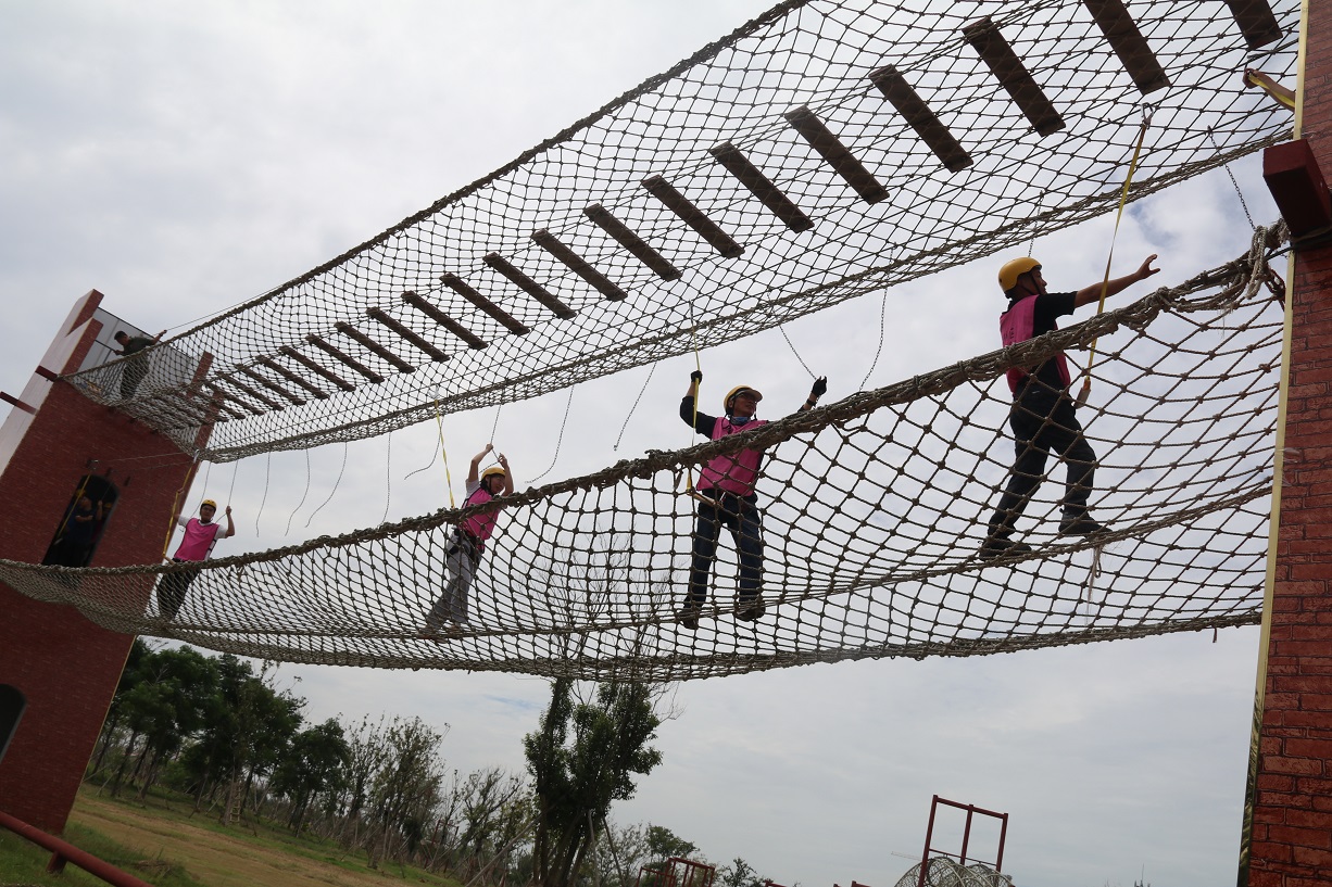 接著,四個(gè)小組先后體驗(yàn)了“強(qiáng)渡大渡河”、“飛奪瀘定橋”等紅色實(shí)景教育項(xiàng)目,使廣大職工體會到當(dāng)年紅軍長征的艱苦環(huán)境,感受了重走長征路的氛圍,增進(jìn)了職工之間的團(tuán)隊(duì)友誼、鍛煉了隊(duì)員勇于挑戰(zhàn)的堅(jiān)強(qiáng)意志。
