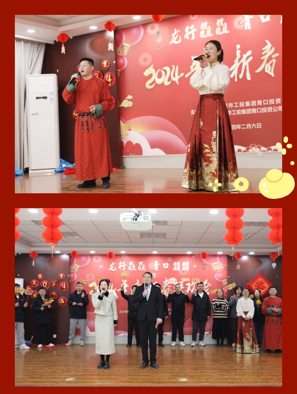 家國書寫新篇章,巨龍騰飛耀東方。開場舞《中華舞龍》拉開了聯(lián)歡序幕,預(yù)示新的一年青口投資公司干部職工將接續(xù)奮斗,以更加昂揚(yáng)的姿態(tài)、更加飽滿的熱情,積極投身高質(zhì)量轉(zhuǎn)型發(fā)展的藍(lán)圖建設(shè)。