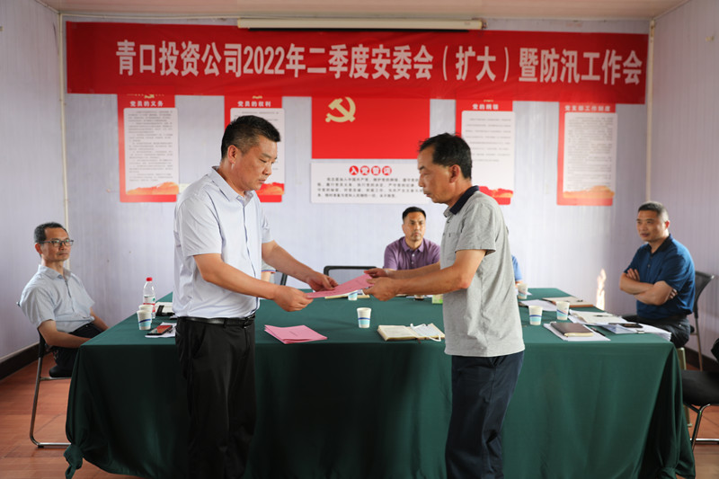 演練結束后,工作會在承擔主要防汛任務的三洋分場召開。會上,生產安全部匯報二季度安全工作情況,副總經理許太冬傳達《關于深刻汲取近期事故教訓采取嚴厲措施堅決遏制事故多發(fā)勢頭的通知》,副總經理楊守明布置公司安全工作及防汛工作,各單位遞交2022年度防汛工作責任書。