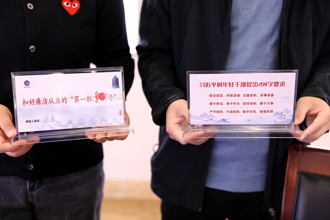 ? ? ? ?會后,公司紀(jì)委為10名新提拔干部發(fā)放了廉潔承諾桌牌,提醒他們常把“廉”字記心間,扣好廉潔從業(yè)的“第一??圩印薄#ㄇ嗉o(jì))
