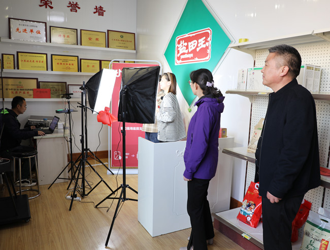 調(diào)研組先后參觀“鹽田玉”抖音帶貨直播間、“鹽田玉”生產(chǎn)加工車間、大新農(nóng)場(chǎng)水稻收割現(xiàn)場(chǎng)。