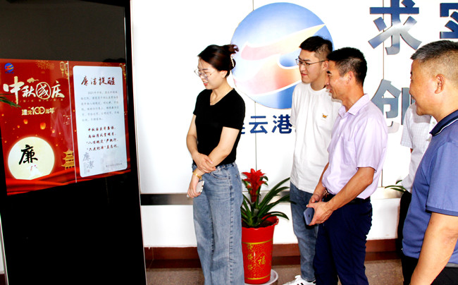 制作電子提醒卡。“中秋國慶寄廉語,兩袖清風賞明月,‘八項規(guī)定’嚴執(zhí)行,‘六大紀律’莫忘記”,青口公司員工群收到這樣一條提醒賀卡,為黨員干部送去善意的提醒和溫馨的祝福,并利用電子屏循環(huán)播放,烘托出風清氣正的節(jié)日氛圍。(瞿 ?方)