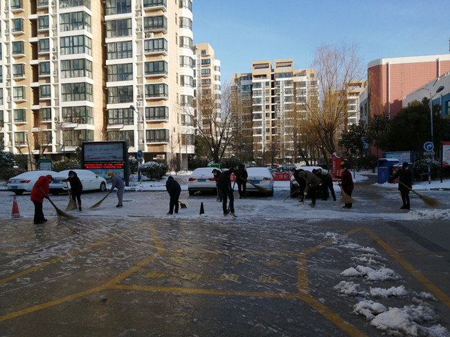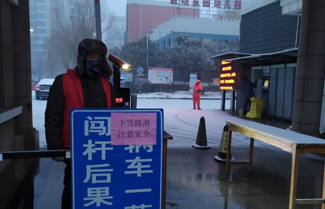 作為公司職工居住的鹽場家園小區(qū),按照金海社區(qū)要求,執(zhí)行封閉管理,每戶只發(fā)一個通行證,除門衛(wèi)外,管理人員全部參與輪流值班。特殊天氣時,大門的看守更加嚴(yán)格與認(rèn)真,值班人員對過往的人員登記、量體溫,確保沒有問題后才給與放行。大雪洋洋灑灑,清晨的鹽場家園銀裝素裹,泰祥物業(yè)的工作人員,佩戴好口罩,拿著掃帚彎著腰,揮動手中的工具在清理積雪。雪已結(jié)成冰,但他們不畏寒冷,堅毅有力,鏟掉冰凍。寒冷的天氣,絲毫沒有影響大家的熱情,先主路后支路,逐漸掃出一條整潔的路面,疫情面前,泰祥物業(yè)人用行動用嚴(yán)格用責(zé)任溫暖了業(yè)主的心。
