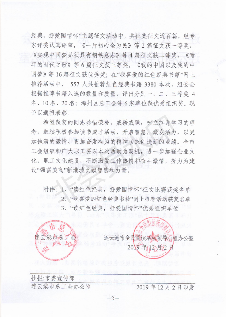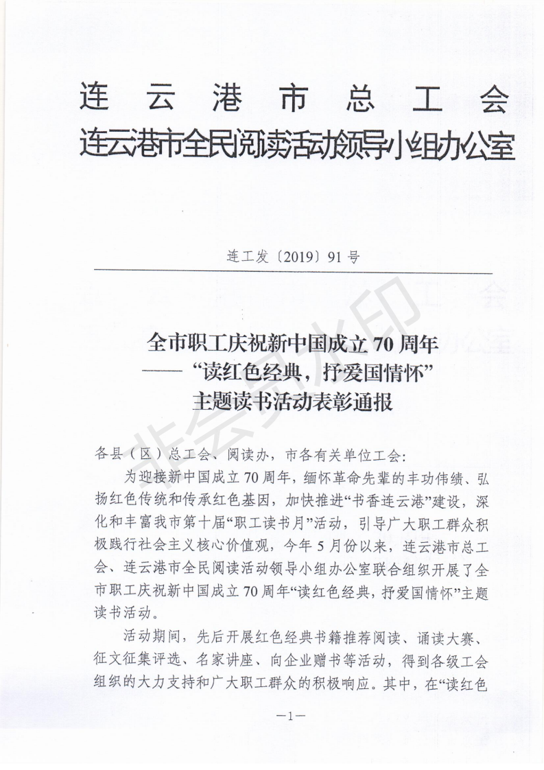 在全市職工慶祝新中國成立70周年“讀紅色經(jīng)典,抒愛國情懷”主題征文活動(dòng)中。經(jīng)專家評(píng)委認(rèn)真評(píng)審,我公司三位員工的文章獲得獎(jiǎng)項(xiàng),其中,萬中一的《一片初心全為民》榮獲一等獎(jiǎng);仲偉彬的《信仰的力量-讀《紅巖》有感》榮獲三等獎(jiǎng);杜娟《明月照我心》榮獲優(yōu)秀獎(jiǎng)。