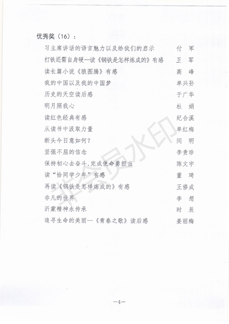 我公司將繼續(xù)利用好職工書屋,營造濃厚讀書氛圍,希望所有員工持之以恒發(fā)揚(yáng)愛讀書、讀好書、會(huì)讀書的良好習(xí)慣,讓文字浸潤身心,讓讀書伴隨終身。(顧 益)