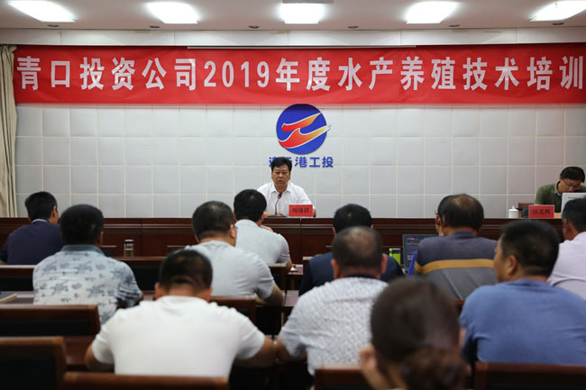8月28日下午,青口投資公司在四樓會議室舉辦2019年水產(chǎn)養(yǎng)殖技術培訓,來自三洋、黃沙、大新、生態(tài)種養(yǎng)管理人員及部分養(yǎng)殖戶代表,共計50余人次參加培訓。副總經(jīng)理周緒祥、總經(jīng)理助理張銘楊參加。