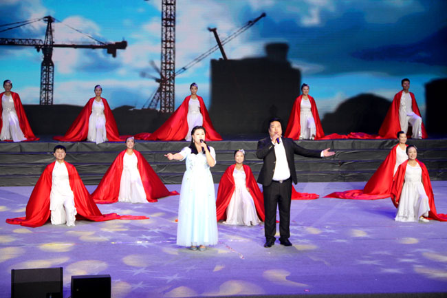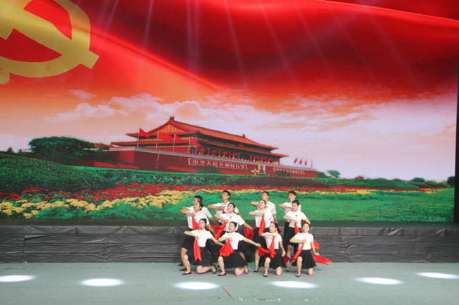 此次文藝匯演在歌舞《不忘初心》中拉開序幕,2名主唱用高亢、嘹亮的歌聲,深情訴說著對祖國的崇敬與熱愛。男、女歌手唱功扎實,臺風穩(wěn)健,贏得在場觀眾的陣陣掌聲。伴舞的16名舞蹈演員身著白衣,手握紅旗,用優(yōu)美的舞姿、整齊的動作,盡情描繪出了每一名工投兒女不忘初心、砥礪奮進的豪情!配合精心制作的視頻背景,《不忘初心》作為開場節(jié)目受到了到場觀眾的一致好評。