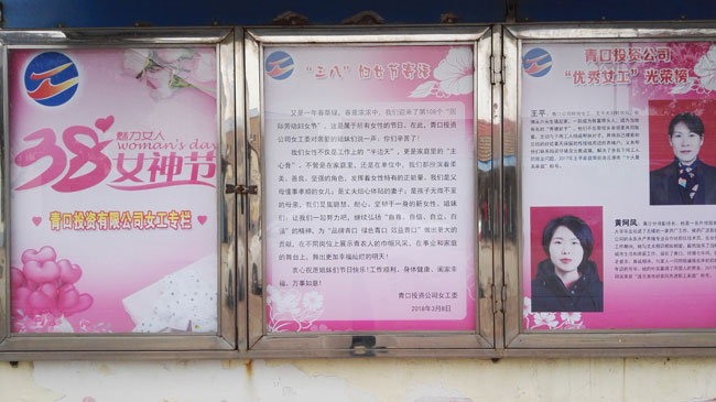 為表彰先進(jìn),樹立典型,激發(fā)女工們爭先創(chuàng)優(yōu)的意識, “三八”節(jié)前夕,青口公司女工委開展了“優(yōu)秀女工”評選活動,對評選出來的優(yōu)秀女工加大了宣傳力度,并增設(shè)“三八”節(jié)櫥窗專欄,大力宣揚(yáng)公司先進(jìn)女工事跡?!?/span>