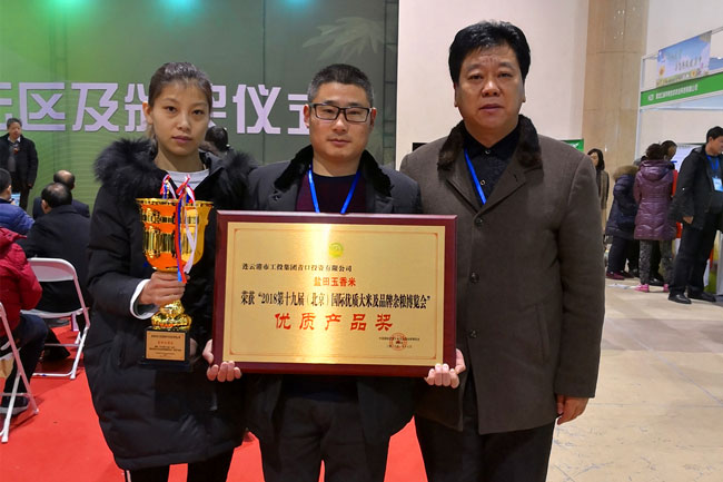 新年伊始,萬象更新,公司 “鹽田玉”大米再獲重量級(jí)榮譽(yù)。在 2018第十九屆(北京)國際優(yōu)質(zhì)大米及品牌雜糧博覽會(huì)上,我公司鹽田玉香米經(jīng)過產(chǎn)品品質(zhì)檢測、品嘗、營養(yǎng)分析等程序?qū)徍耍耆显u獎(jiǎng)要求,在600多家參展企業(yè)中脫穎而出,被授予“優(yōu)質(zhì)產(chǎn)品獎(jiǎng)”榮譽(yù)稱號(hào)。