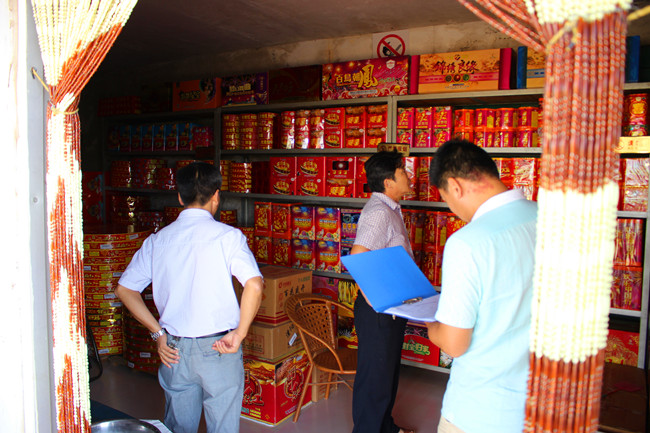 ? ? ? ?9月1日上午,公司安全技術(shù)部對(duì)全場(chǎng)范圍內(nèi)6家煙花爆竹經(jīng)營店進(jìn)行安全生產(chǎn)大檢查,對(duì)檢查中個(gè)別店鋪存在的輕微超量儲(chǔ)存現(xiàn)象提出立即整改要求。(王偉)