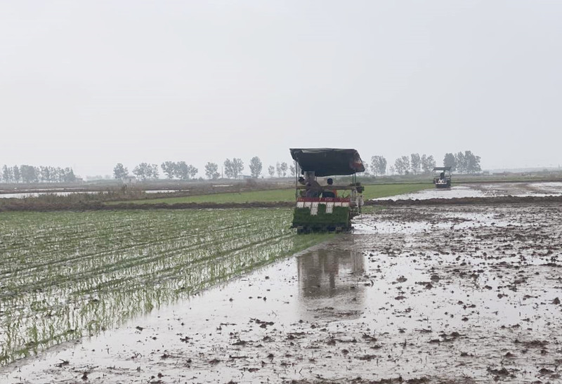 6月4日,大新農(nóng)場搶抓農(nóng)時(shí),全面開始水稻插秧工作,插秧機(jī)來回穿梭作業(yè),田間地頭一派忙碌景象。當(dāng)天,組織插秧機(jī)13臺,秧苗轉(zhuǎn)運(yùn)車6臺次,一天可以完成插秧作業(yè)550余畝。(王 璐)