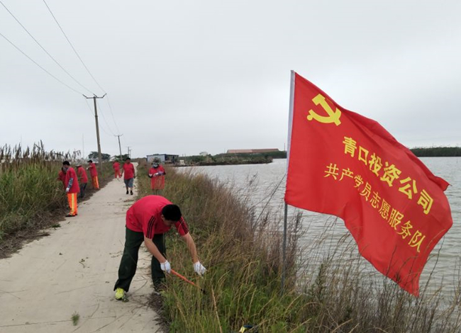? ? ? ?6月9日,生產(chǎn)生活服務(wù)中心支部黨員服務(wù)隊(duì)頂著初夏的炎熱,集結(jié)于養(yǎng)殖區(qū)道路、附河沿岸,開展“扛紅旗、建新功、當(dāng)先鋒”實(shí)踐活動(dòng),大家手持鐵锨、鐮刀、掃帚等工具,鏟除雜草、撿拾垃圾、清掃路面。大家分工明確、行動(dòng)有序,鏟的鏟、掃的掃,各司其職,充分發(fā)揮不怕臟、不怕累的奉獻(xiàn)精神,為職工群眾營(yíng)造暢通、舒心的工作生活環(huán)境。(宋世園)
