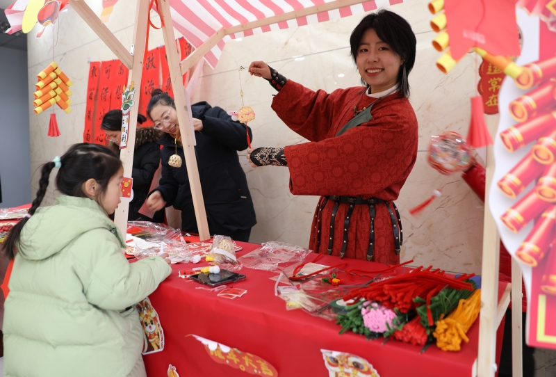 剪窗花、寫對聯(lián),是迎接新年必不可少的傳統(tǒng)習(xí)俗,承載了我們對新一年的美好期望。在傳統(tǒng)民俗區(qū),大家沉浸式體驗(yàn)這些傳統(tǒng)習(xí)俗,有的揮毫潑墨,“寫春送?!?,有的剪紙寄情,剪出各種各樣象征生肖、團(tuán)圓、吉祥的窗花,不一會兒,一幅幅滿載新年祝福的春聯(lián),一張張年味濃濃的窗花,就展現(xiàn)在大家面前。