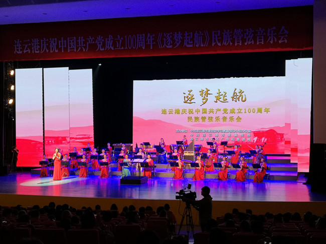 《逐夢起航》連云港慶祝中國共產(chǎn)黨成立100周年大型民族管弦音樂會,由中共連云港市委黨史學(xué)習(xí)教育領(lǐng)導(dǎo)小組辦公室、中共連云港市委宣傳部、連云港市文化廣電和旅游局主辦,連云港市演藝集團(tuán)承辦,演出單位是江蘇女子民族樂團(tuán)。音樂會分為《憶往昔崢嶸歲月》《舉旗幟山河復(fù)興》《再起航奮楫逐夢》三個篇章,每個篇章以詩歌朗誦抒發(fā)時代情感,謳歌黨的光輝歷程。通過紅色旋律表達(dá)人民對黨的感恩之情,向黨的百年華誕獻(xiàn)禮。(神特宣)