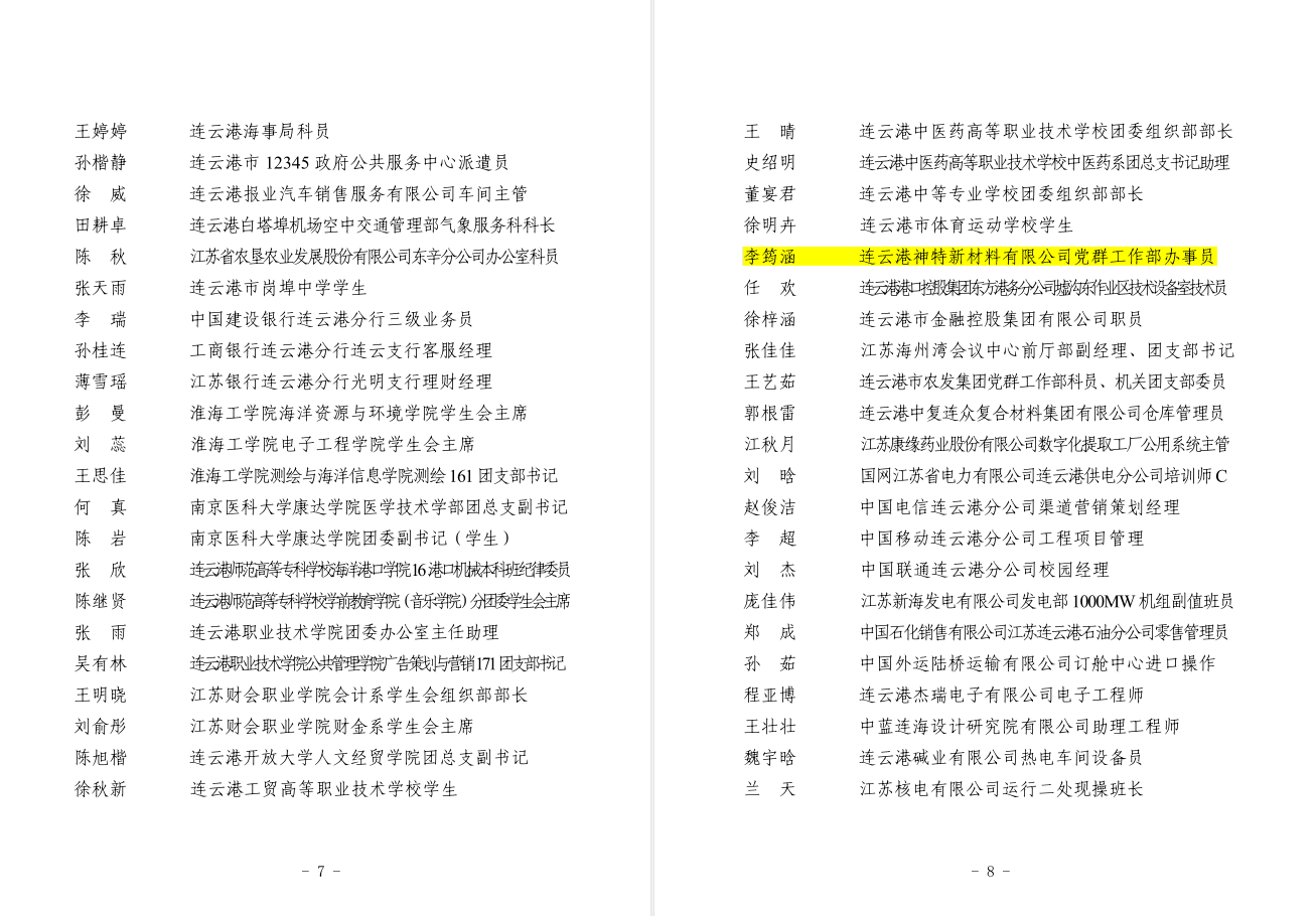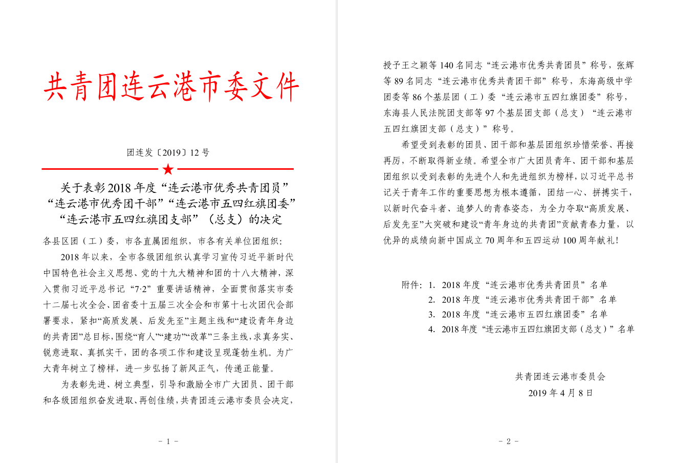 近日,共青團(tuán)連云港市委員會(huì)公布了2018年度“連云港市優(yōu)秀共青團(tuán)員”“連云港市優(yōu)秀團(tuán)干部”“連云港市五四紅旗團(tuán)委”“連云港市五四紅旗團(tuán)支部”(總支)名單,我公司員工李筠涵榜上有名,被授予“連云港市優(yōu)秀共青團(tuán)員”稱(chēng)號(hào)。