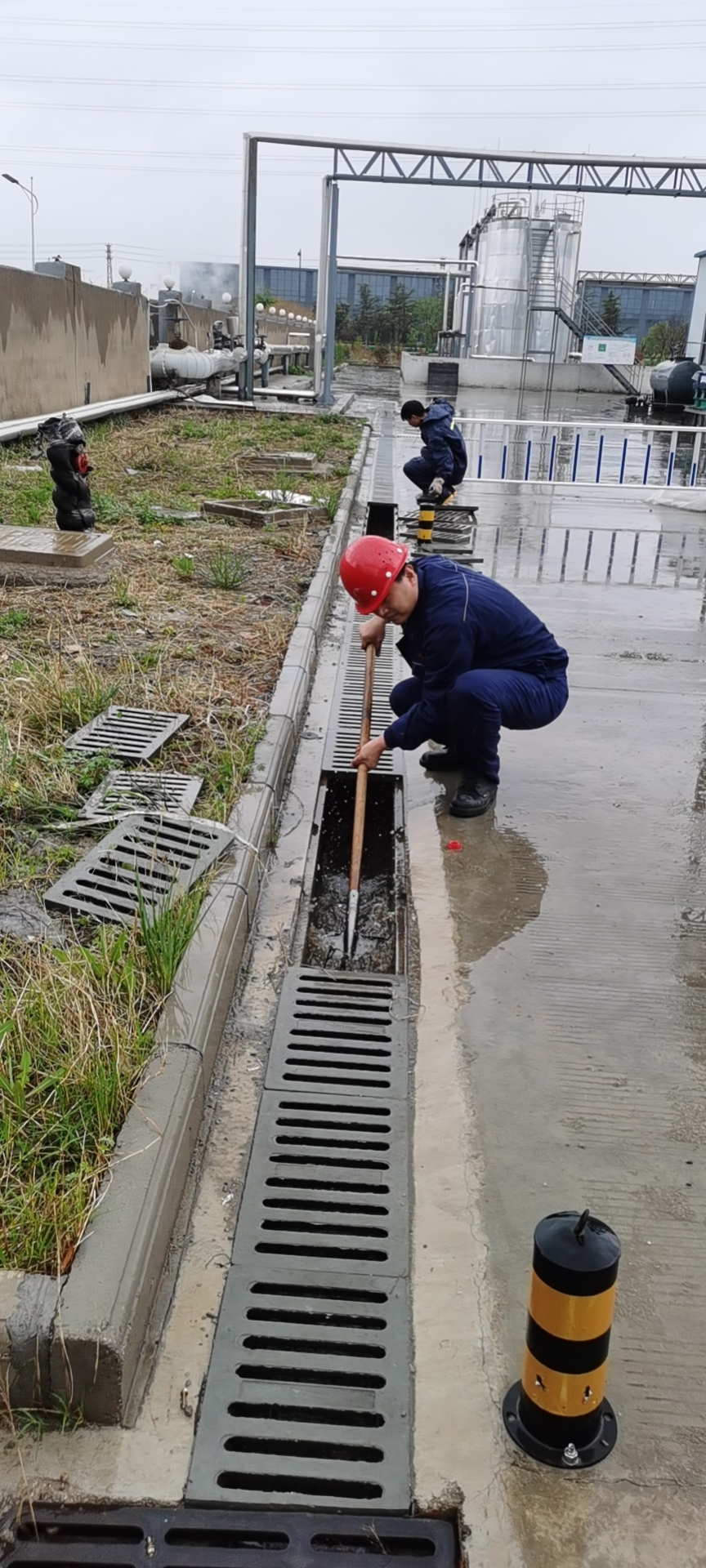 公司組織員工清理廠區(qū)內(nèi)排水溝