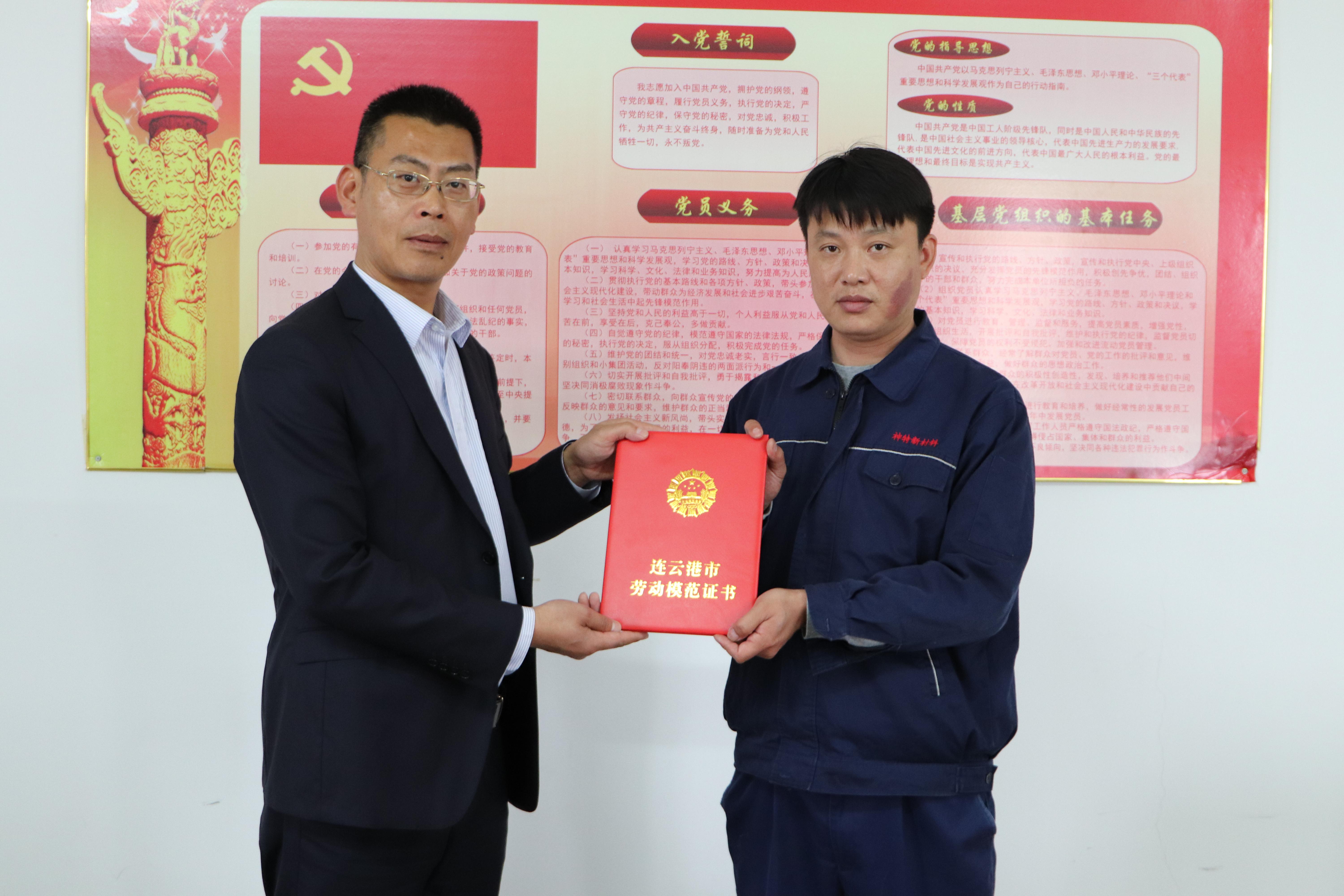 近日,我公司員工封安獲得連云港市勞動模范殊榮。封安同志現(xiàn)為公司生產(chǎn)車間甲班大班長。他,九載如一日,始終保持著執(zhí)著、敬業(yè)和精益求精的精神,在平凡的崗位上做出不平凡的業(yè)績,詮釋了新時代工匠精神,展示了勞動者模范風采,成為一線工人的杰出代表。 (神特工會)