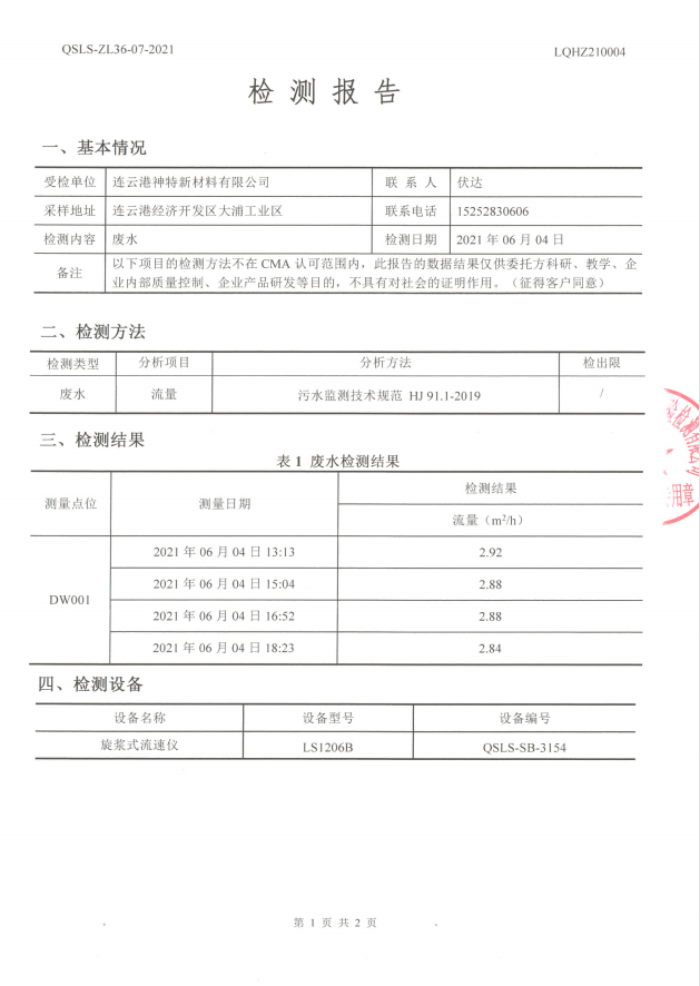 神特公司檢測(cè)報(bào)告公示