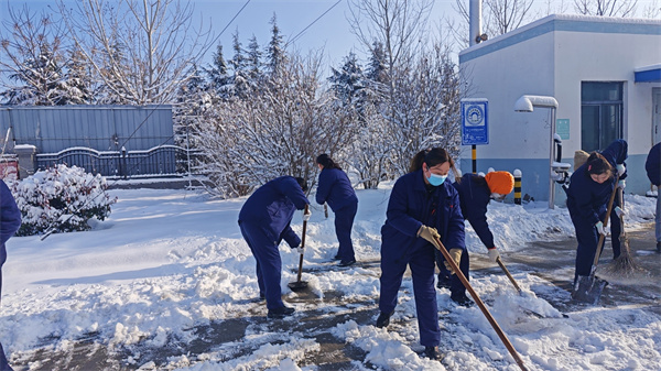 寒風(fēng)刺骨,大家的熱情很高,尤其是年輕的同事積極主動、相互配合,揮舞著鐵鍬和笤帚,有說有笑,共同努力將積雪清理到路邊。寒冷的天氣讓臉頰涌上陣陣紅暈,但心中的溫暖卻讓我們的笑容更加燦爛。行動是最好的“融雪劑”,奉獻是最好的“防寒衣”。