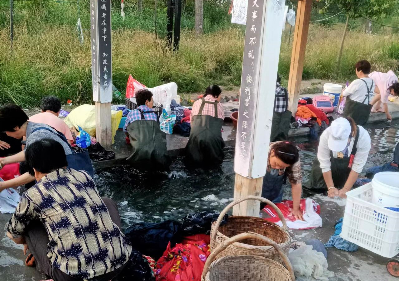 想到這些,我很好奇的查了查這個地方,原來洽川之前的洗衣溝渠被新規(guī)劃占用,他們重新選址建設(shè)了這個關(guān)雎洗衣文化長廊。通過打一眼溫水自噴井,用青石堆砌一條寬3米、長30余米的青石洗衣渠道,并且搭設(shè)了木結(jié)構(gòu)的文化長廊,來保護當?shù)靥赜械南匆挛幕?span>