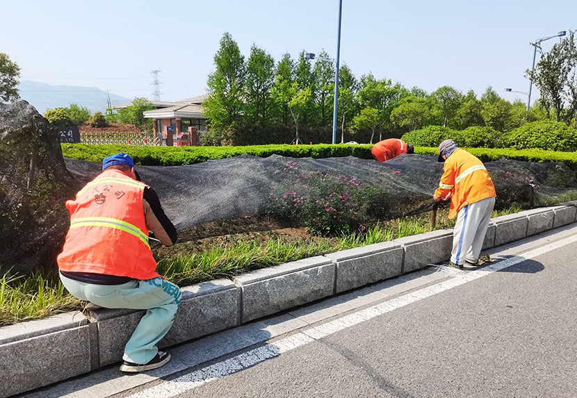 五一期間現(xiàn)場(chǎng)一片繁忙景象。養(yǎng)護(hù)工人們采取錯(cuò)峰作業(yè),避開交通高峰,手持高壓水槍 ,對(duì)轄區(qū)東方大道、匯晶路、顧圩路兩側(cè)新栽植的苗木進(jìn)行精準(zhǔn)澆灌,確保新栽苗木存活率;東方大道養(yǎng)護(hù)班在孫班長(zhǎng)的帶領(lǐng)下,對(duì)東方大道中央隔離帶內(nèi)進(jìn)行補(bǔ)植麥冬,采取覆蓋遮陽網(wǎng)等措施,以減少水分蒸發(fā)和避免陽光灼傷。同時(shí)充分利用雨后土壤松軟,組織工人對(duì)轄區(qū)綠化帶內(nèi)的雜草、雜樹進(jìn)行清除。